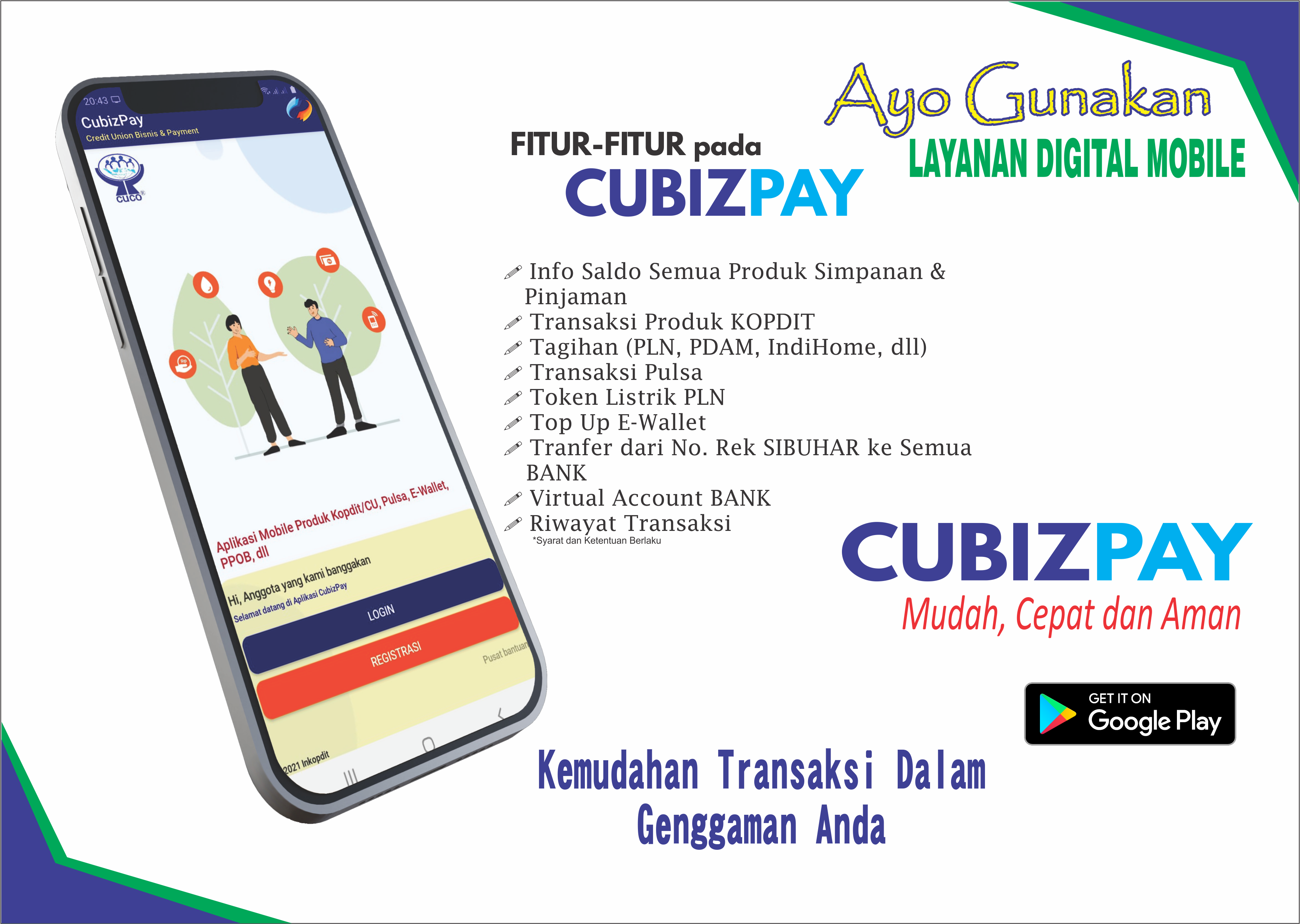3. Aplikasi CubizPay dapat diregistrasi secara mandiri melalui Handphone (setelah di verifikasi admin)